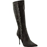 Create a totally glamorous silhouette with this must-have faux suede boot featuring a knee-high shaft with ruffle detailing, classic pointed toe and inside zip closure. Product Information